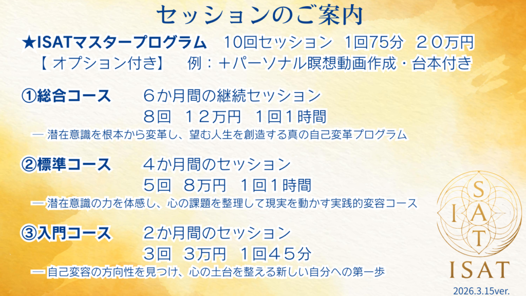 ISAT標準コース<潜在意識体感プログラム> 全5回(更新あり)1回60分